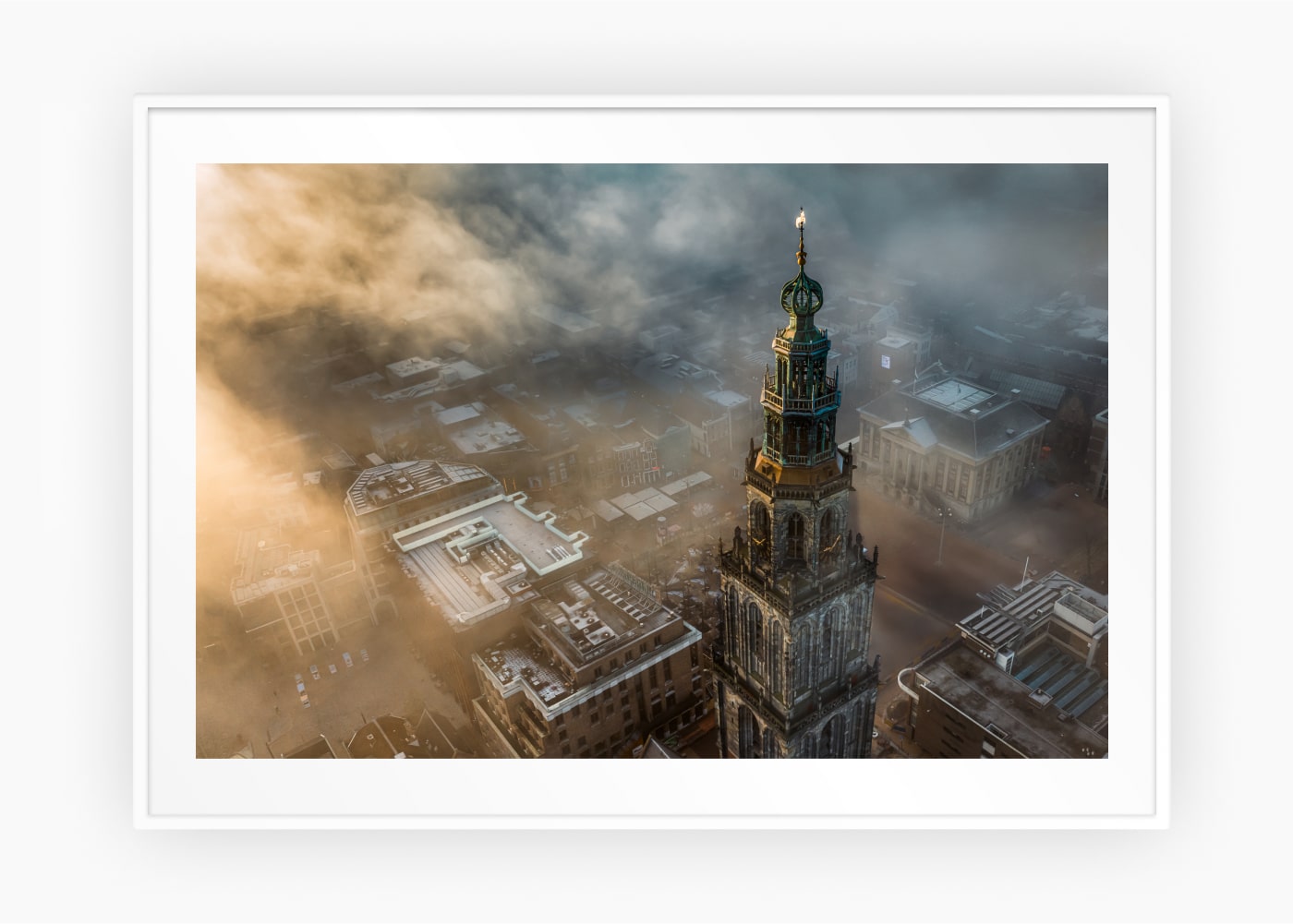 Foto van de verlichte binnenstad in Groningen. Foto is geschoten in 24k resolutie. De mooiste foto’s van Groningen